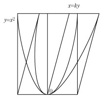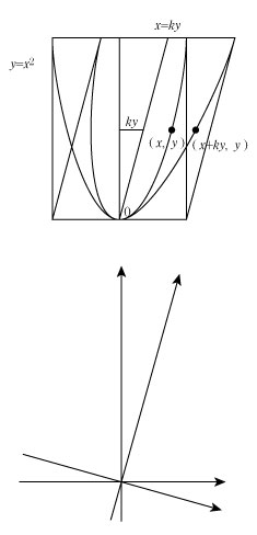 放物線 y=x2 上の点 (x,y) に対応する新しい曲線上の点は (x+ky ,y) である.