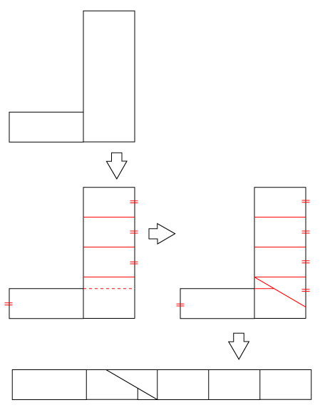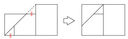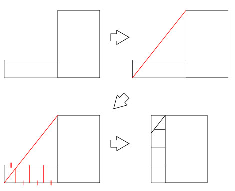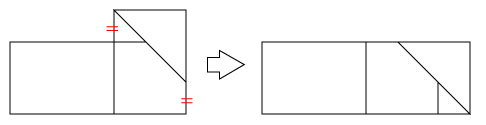 | 2つの長方形を変形して1つの長方形に作り変えることを考えよう. 2つの長方形を次の図のように並べる.