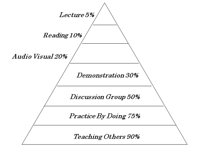 Learning Pyramidがどのようなものかを初めて知った時の衝撃は今でも忘れられない。以下の図がLearning Pyramidである。