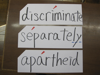 アパルトヘイトについては,南アフリカの歴史を語る上でキーワードとなるものである。Apartheidという単語の成り立ちに注目して,以下のような文章を板書した。