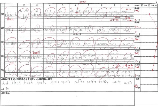 私は生徒自らが「やる気になる」ための工夫としてB4用紙1枚両面で計10回実施できるようにしています(資料①)。