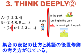 数学の部分集合(subset)と英語の後置修飾(Postpositive adjective)の構造を比較してみよう