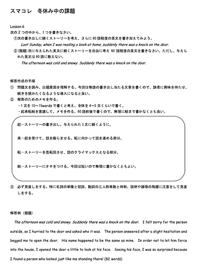 多くの生徒が目標とする大学の入試問題においても同様の論理構成力や発想力が必要とされている例を紹介した。実際に東京大学の過去問から英作文を複数出題し,解答作成に取り組んだ。