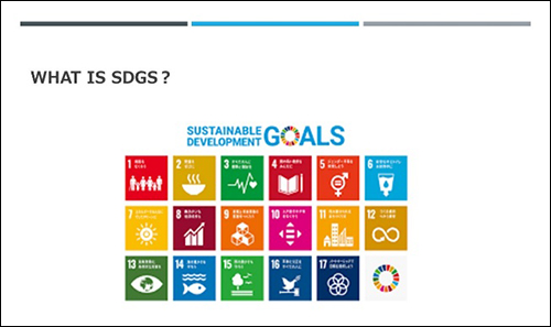 理解した読解内容を発表するアクティビティは様々な方法がありますが,この単元では,SDGsのことを学び,自分が気になる環境問題を調べ,その問題がどういった方法で解決できるのかを調べ発表しました。読解したテーマのものを発表するので,学んだ英単語を再度利用し,アウトプットすることで学んだ内容をより深く身につけることができたと感じています。