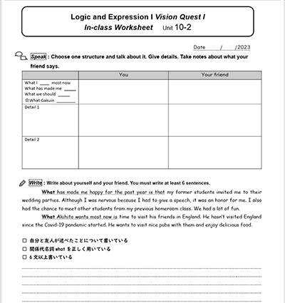 ここでは,啓林館の『Vision Quest English Logic and Expression Ⅰ Advanced』の授業実践を報告致します。