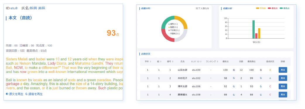 ⽣徒が読んだ⾳声をリアルタイムで判定してくれます。