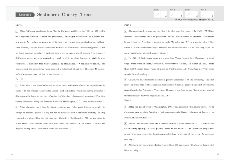 教科書本文が掲載されているため,書き込みをしながら,音読練習が可能です。