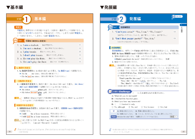 - 章扉に掲載した「文法の体系図」は,章目次として活用するほか,各文法項目がどのように関連しているのかを俯瞰的に見ることができる