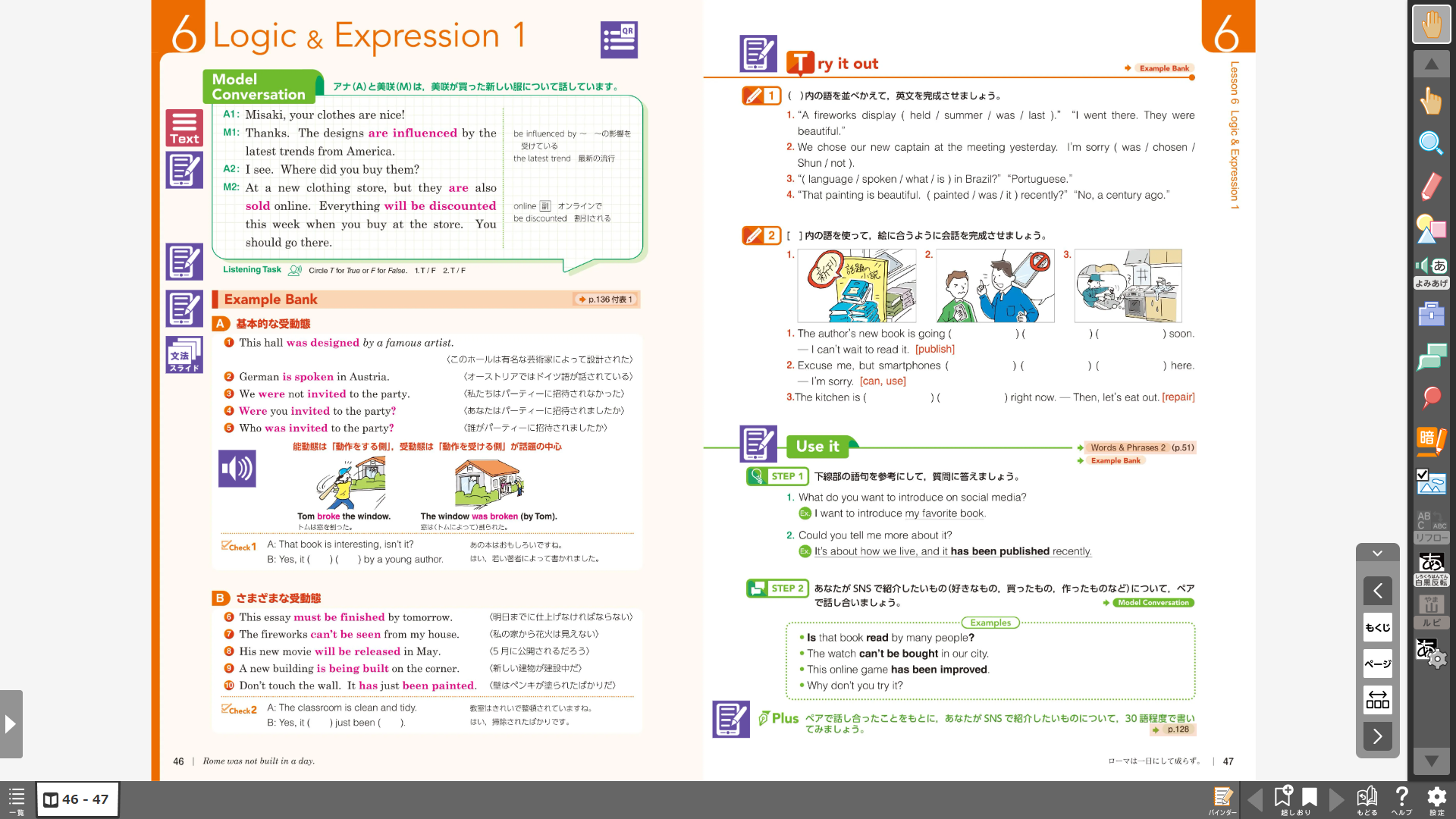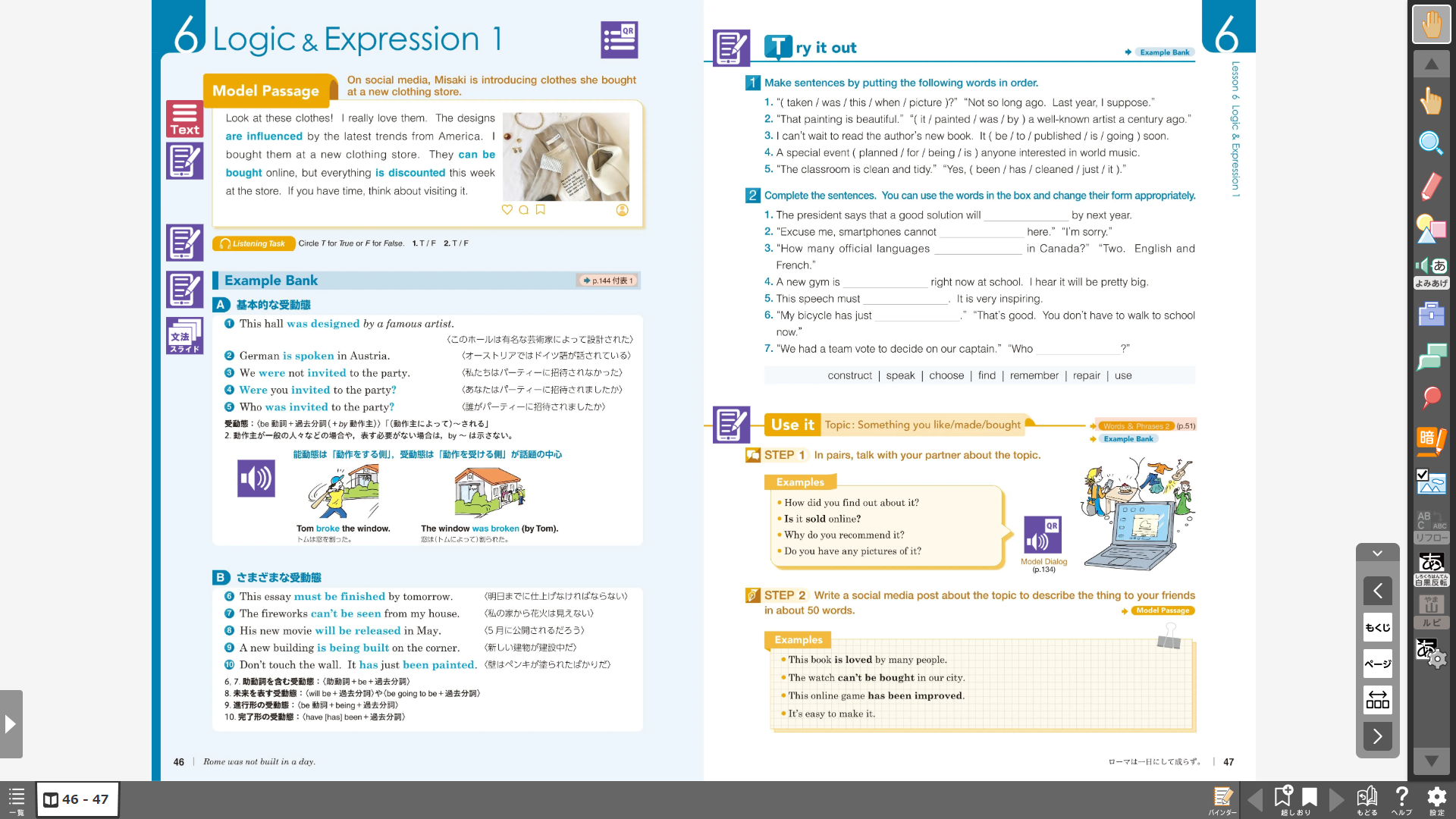 - 採用教科書の紙面を投影しながら,音声を再生できる