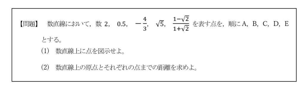 ・第2節実数においては,2乗の計算はできるが平方根は考えられない生徒や,√2などの無理数を数直線上に表すことができない生徒も多い。結果として,数直線上に実数が連続的に存在することを理解しないまま絶対値の扱いに入り,絶対値の取り扱いにおいて文字が入り抽象度が増すことなどが原因で生徒のつまずきが見られる。