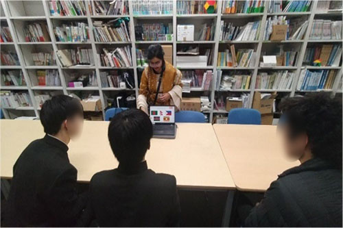 2025年1月29日(水)に添削管理リーダーであるナボニー・プリオドシニ―さんが来校され,生徒3名,及び授業担当教員の2名で意見交換会を持つこととなった。意見交換会に先立ち,3学期の英検後にアンケートを実施した。授業担当者として,生徒から得た解答で印象的だったのは,「高校1年生になって,英検の一次試験に合格した」「定期試験や模試などの英作文に抵抗がなくなった」「分野ごとに語彙が整理されているので,ボキャブラリーが増えた」というこちらの用意した項目,すなわち,こちらが達成を意図した項目に生徒が多数同意していることから,英作文への抵抗感が薄れてきている生徒や,スマコレを通じて確実に達成感を得ている生徒や自身の学力の伸張を実感している生徒が多々いる点である。スマコレの満足度は,授業を受ける生徒だけでなく,それに取り組ませる教員の立場からしても非常に高いものである。