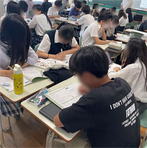 →『ゼロから始める探究活動』を授業のペースメーカーとして使用しました。これによって,最終目標としている高校2年生3学期でのパネル発表もしくは,論文要旨の作成から逆算し,どの知識をどのタイミングで入れる必要があるのかを明確にすることができました。