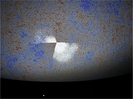(6) 宇宙背景放射をみて宇宙全体の想像図をみて,地球にもどる。