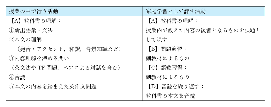 ●授業内活動の詳細
