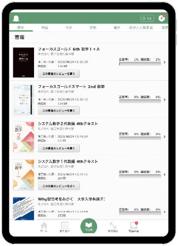 解いた問題と同じ知識を使う問題や,解き方が近い問題を,Libry内で持っている書籍から横断して表示します。