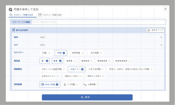 条件を指定して問題を検索します。