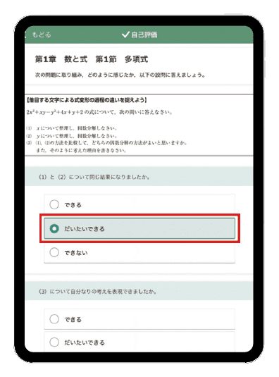 学習履歴に基づいて,苦手分野克服のための問題を表示します。