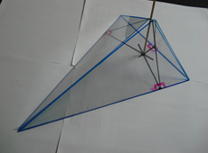 展開図を配布し,生徒自らが立体を組み立てて問題に取り組ませた。問題1とは異なり,垂線の足の位置が展開図における底面の三角形の外部に存在することから,見取り図では考えにくいことを実感していた。そこで,展開図における垂線の位置の作図方法を用いて,問題解決に取り組む姿勢が見受けられた。