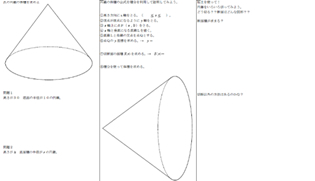 区分求積法が活用できる切断において,まずは3等分に切断した。その際もとの円錐より大きな立体をつくり,三等分してできた,円柱の高さ,半径を考察した。