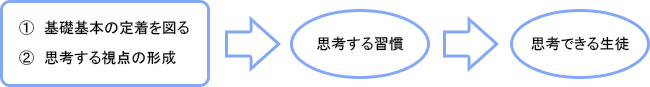 定理や公式を鵜呑みにする生徒は多い。そのため,『なぜ』成り立つのかを生徒に聞く。常に『なぜ成り立つのか』という視点を大切にする姿勢を身に着けさせる。