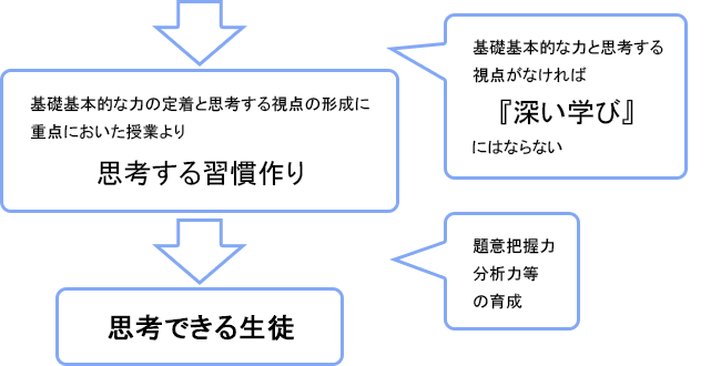 上記で書かれているように,漠然と思考することは難しく,思考する題材が必要であり,思考するための基礎基本的な力と思考する視点の形成が必要である。