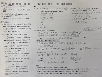 2年8月を目途にⅠAⅡBの履修終了。Ⅲの教科書と同時並行でⅠAⅡBの入試問題演習を週1時間創設(1時間3問程度)して履修内容の定着・レベルアップを図る。3年夏から個別試験対策「ベクトルの攻略」「数列の攻略」「ⅢCの攻略」の独自教材の冊子を作成し受験対策授業の実施。
