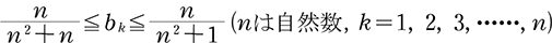 を求めよ。≫という問題で,はさみうちの原理を使うための不等式は明示していない。これまでの学習経験から自ら不等式を作り出し,その証明を行ってから所望の極限値を「はさみうちの原理」を使って求めるものである。