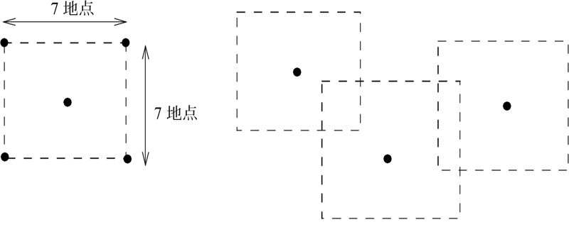 また各地点ごとに,その点をとりまく7×7の49地点の標高でその標準偏差を計算し,その地点の「でこぼこ度」とした(図4)。もし,平野ならば,標高データのばらつきは少ないだろうし,逆に大きければ,アップダウンがあることになるので,でこぼこしていることになる。