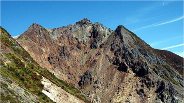 南月山も太古の昔,この大きなカルデラに成層火山を成していた。それが噴火とともに南側に火砕流や土砂が流れ,その後に黒尾谷岳が形成された。黒尾谷岳も茶臼岳と同様,2次的な山である。