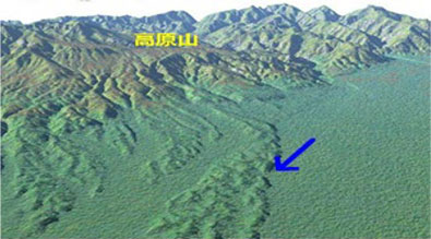 南月山のところも茶臼岳と同じような現象がみられる。図25のように南側が崩れたカルデラがあるのがわかる。「南月山カルデラ」とよばれるものである。