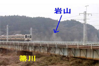 栃木県教育委員会のサイトの画像にも,なだれの跡らしいものがはっきり現れている(図30)。確かに大田原市野崎(宇都宮線のトンネル)付近に行くと,複数の岩山を見ることができる(図31)。それらはなだれの痕跡に見える。そしてこれらは那須野が原の西側の“壁”を構成している。