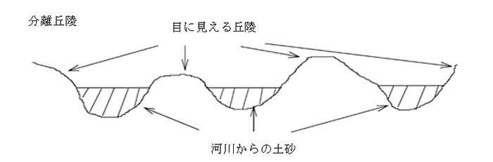この分離丘陵のいくつかは,人間の手によって丘の高いところが開墾され,平らになり,水田になっていたり,国際医療福祉大が建っている。図29の丘陵で,茶色の細長い輪の内側が黄色くなっているが,その部分がそれに相当する。