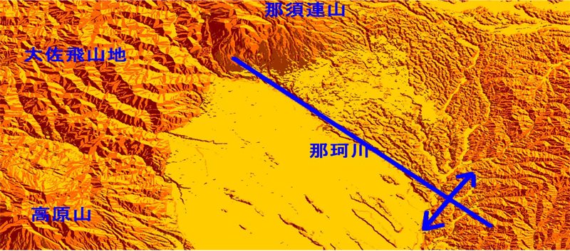 本編は,授業実践記録2020年4月・5月掲載の「那須の地形をみる(前編)(後編)-数学を活用して地形の成り立ちを分析する-」の続編である。できればそちらも参照されたい。そこでは,国土地理院からダウンロードした,那須地区の数百万からなる標高データを利用して,那須野が原の地形について言及した。そのときは,主に那珂川より西側の地形について分析を行った。しかし那珂川より東側(正確には北東)の地区については,那須野が原と地形が異なることを言及したくらいで,それ以上の踏み込んだ議論はしなかった。そこは那須のリゾートや商業施設が建ち並び,脚光を浴びている。