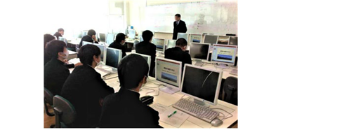 コンピュータを前に熱心に講義を聴く生徒達 図45