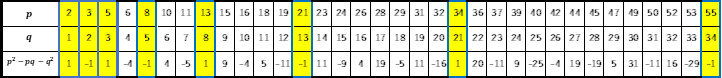 ここまでは白銀比と同様に黄金比の場合と類似していることがわかる。しかし,ここでも青銅比を構成する分数の場合,黄金比の場合と異なるところがでてくる。