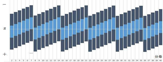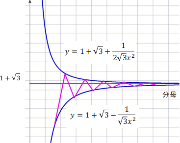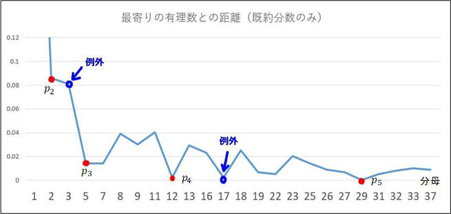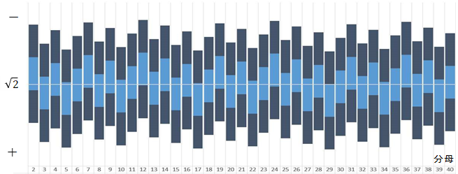 よって,この場合も偶数と奇数の項で近づく値が異なり,有理数との距離は狭い方をとって,