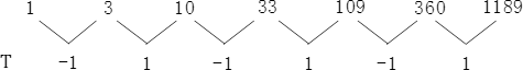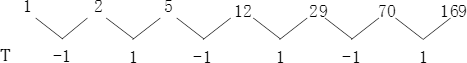 つまり隣接する項で,この値は絶対値は同じで,プラスマイナスを繰り返す。実際,この青銅比からの数列で最初から計算すると,
