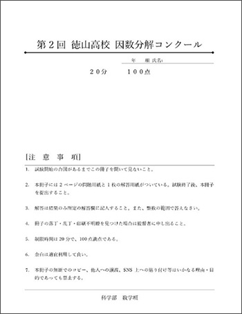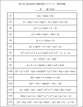 第2回 9月11日 タイトル『第2回徳山高校因数分解コンクール(徳高祭)』