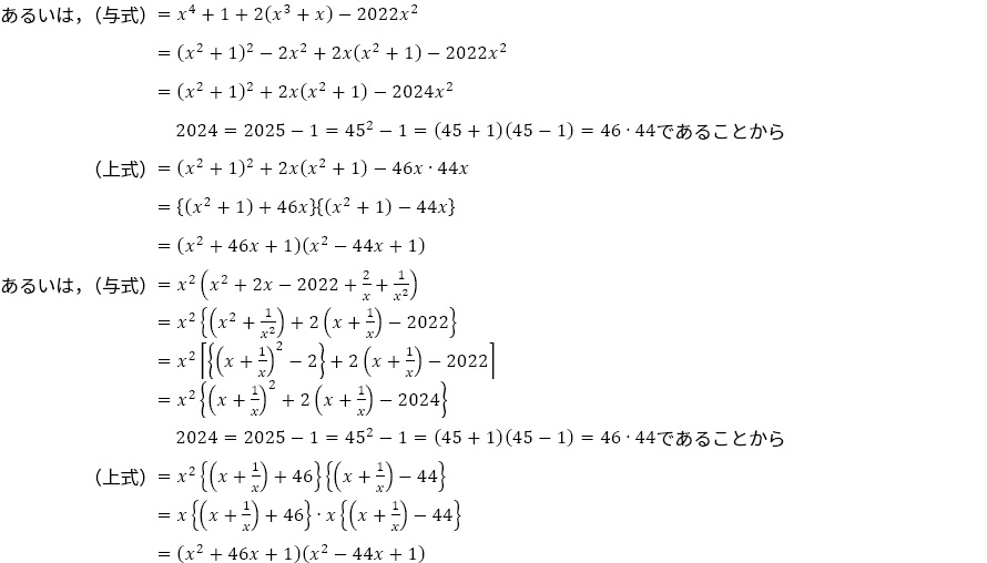 の1次と3次の係数がともに2であり,2次の係数が2022であることから