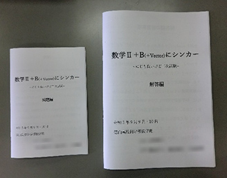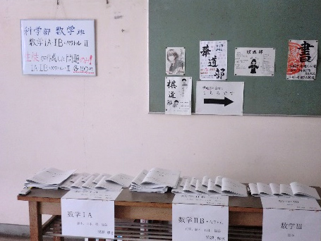 当初の予定では,数学ⅠA,ⅡB,ⅢCの3種類の問題と解答をセットにして,各セットをそれぞれ20冊,20冊,10冊ほど印刷,製本し,それぞれ100円で販売するということであったが,実際には大幅に増刷することになった。