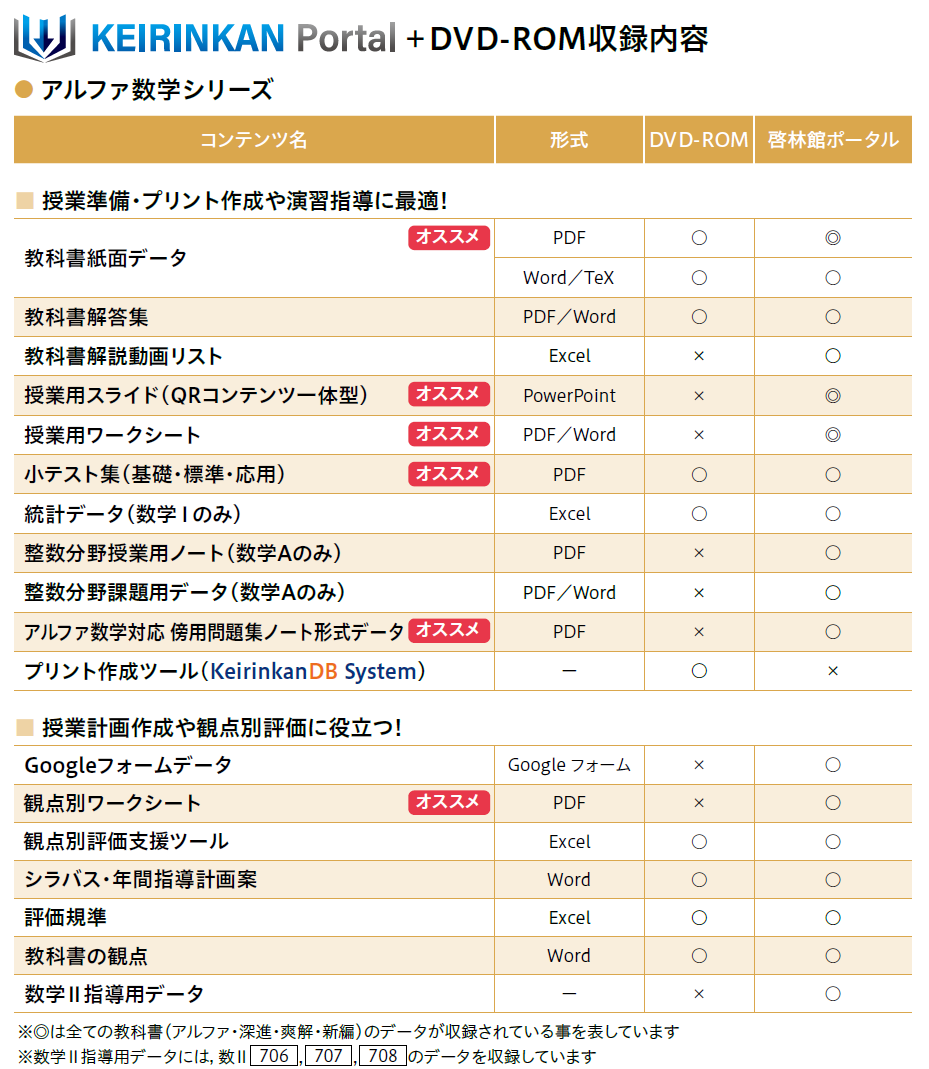 - 指導用用DVD-ROMおよびKEIRINKAN Portalに収録のデータのサンプルを掲載