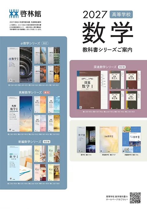 啓林館の改訂版教科書ではシリーズ毎に内容の取り扱い方を工夫しています。2章2節[2次関数の最大・最小]を例にとり、扱い方を比較した資料をご覧いただけます。