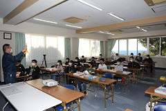 午前中は,和歌山県立潮岬青少年の家にて和歌山県宇宙教育研究会の総会を開催し,活動方針を決定した。また,前日に作成したモデルロケットの打ち上げを潮岬青少年の家にて行った。2日間の講習を通して,モデルロケット打ち上げライセンス4級と3級を取得した教員も多数いた。