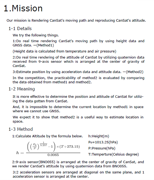 ESAに出場した桐蔭高校の生徒が作成したミッション概要資料を紹介します。全文は以下<ESA用のミッション概要資料(全文)>をクリックするとご覧いただけます。