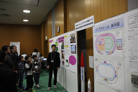 ロボカップジュニアの見学にきた子供たちにロボカップジュニアサッカーのルールや簡単なプログラミングについて解説を行った。