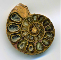 アンモナイトや巻貝の殻は,“対数螺旋”(等角螺旋とも)と呼ばれる螺旋構造を持つことが知られている(一方,蚊取り線香のようにピッチが一定の間隔を持つものは“アルキメデス螺旋”と呼ばれる)。宮永(2003)によれば,対数螺旋は次の式で表される。