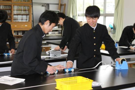 現在,本校の理数科に関しては,実践事例の内容を「総合的な学習の時間」の中で実施している。ただし,「総合的な学習の時間」だけでは十分に時間が確保できないという問題点がある。さらに,今年度より実施されている「新学習指導要領」について,理科では基礎を付した科目は標準単位が2単位である。そのため,授業時間内での実験や実習の時間の確保が難しくなっている。そこで実践事例のように,教科・科目の特性を生かし連携することで,指導内容の充実や時間の確保ができると考える。