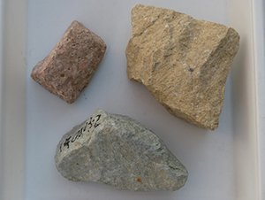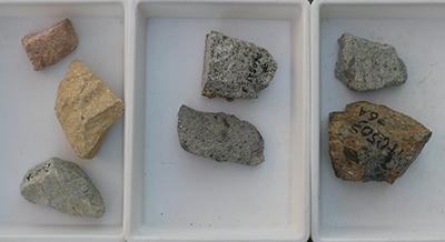 図12 粒が小さいか中くらいか大きいかで分ける(左は細粒で均質,中央は小さな岩片を含んでいる,右は大きな岩片を含んでいる)