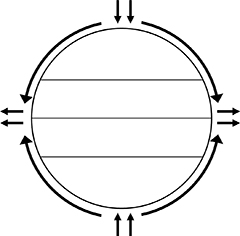 図4: ハドレーモデルを元に表層の気象現象を考える
