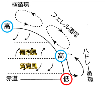 偏東風は北東の風,偏西風は北西の風と解釈することで,